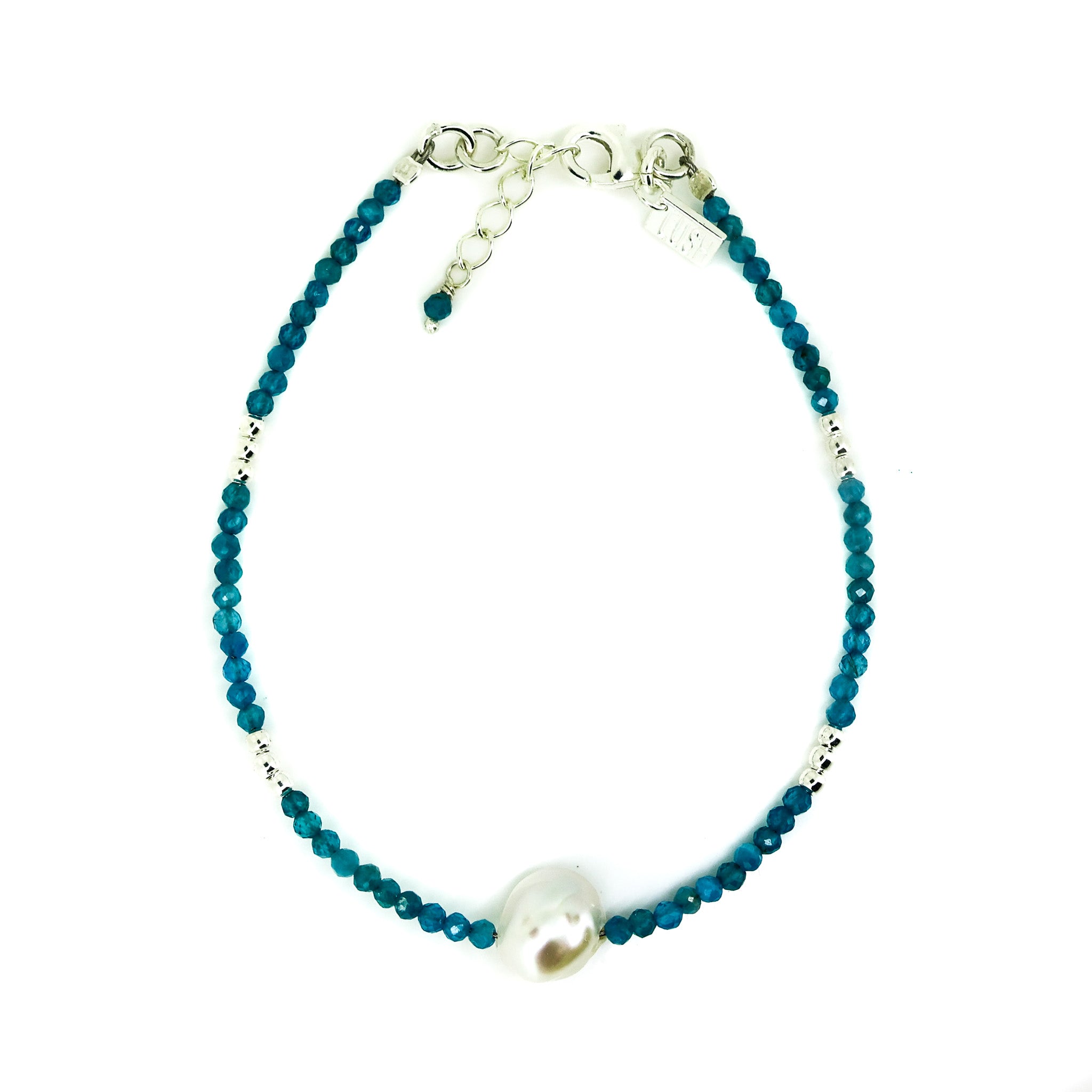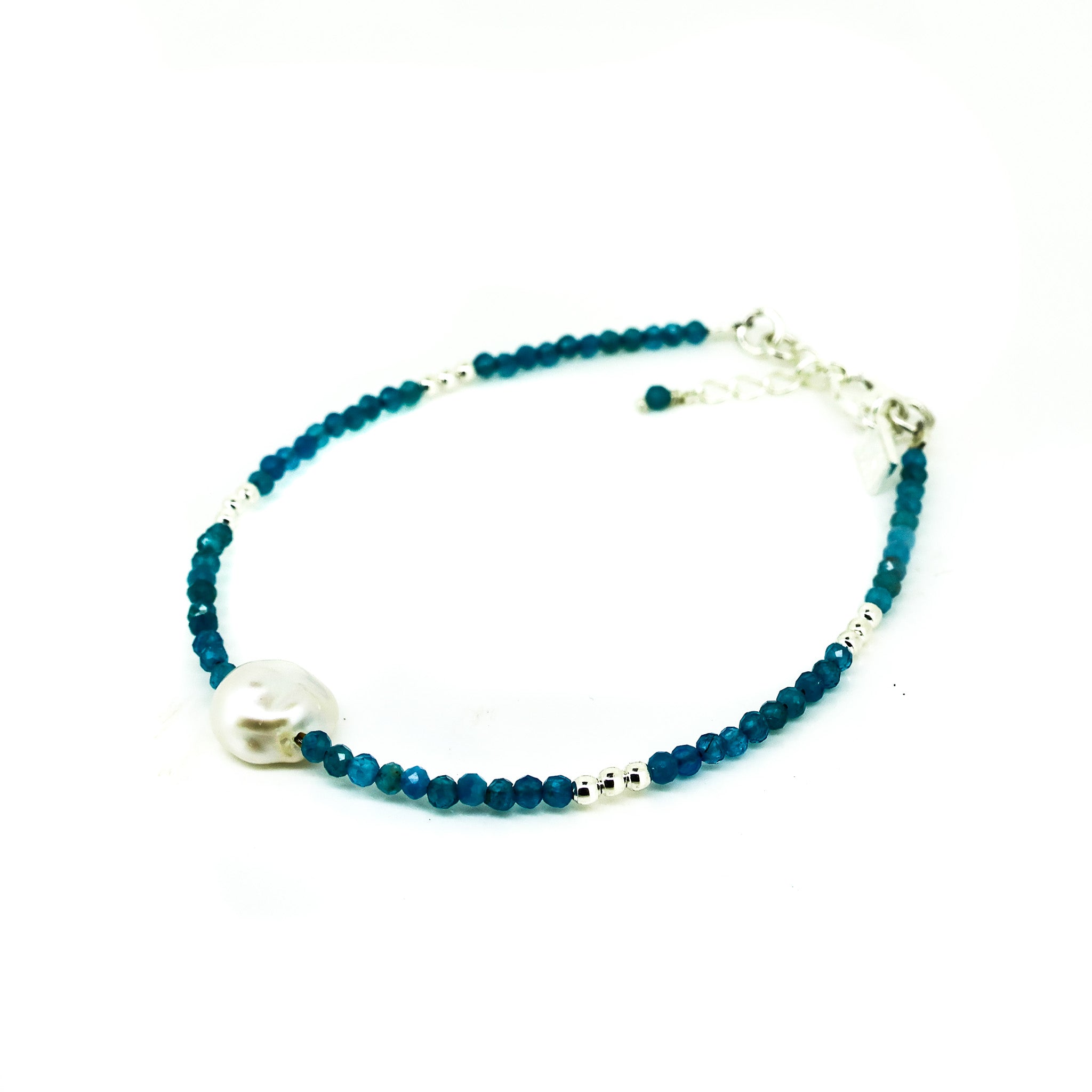 Azure Breeze Apatite Pearl Bracelet Silver