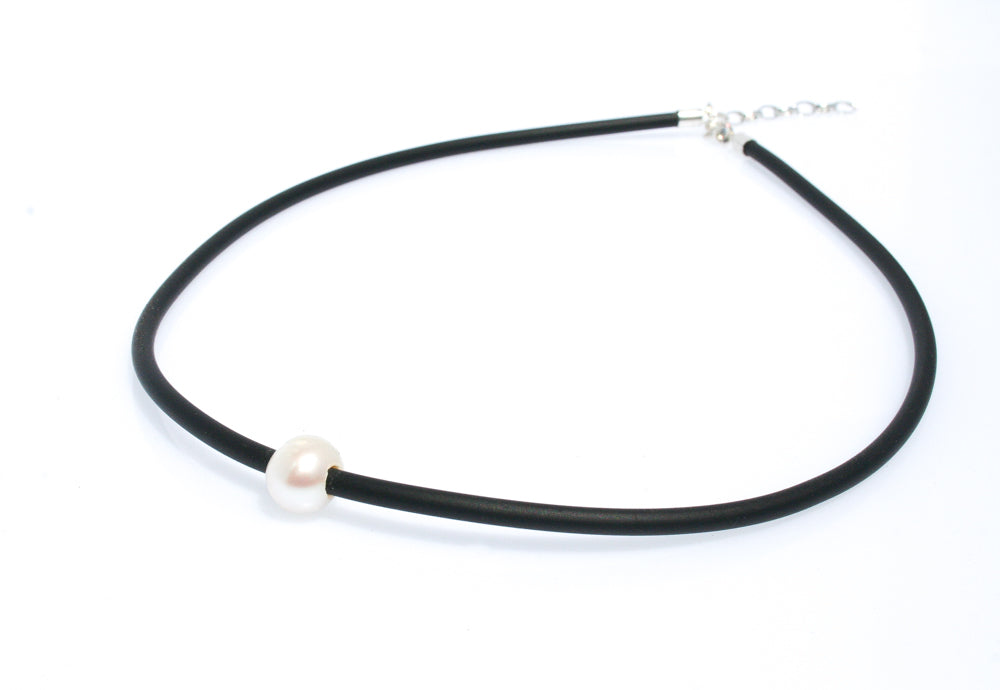 Keshi Pearl Neoprene Bracelet Silver Clasp