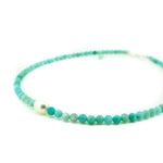 Embrace effortless coastal style with our Amazonite Pearl Beaded Necklace, featuring a single luminous freshwater pearl framed by faceted Amazonite gemstones — each one reminiscent of tranquil ocean hues.