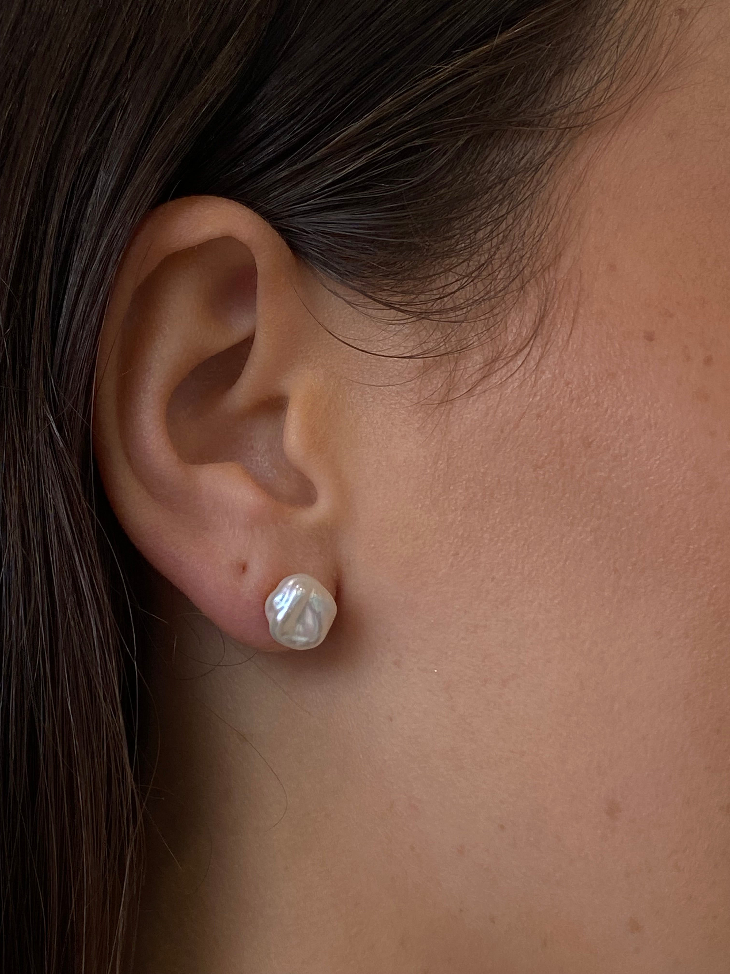 Each earring features a unique baroque freshwater pearl, renowned for its natural irregularities and enchanting beauty. Set in luxurious gold vermeil, these studs radiate warmth and elegance, adding a touch of refined glamour to any ensemble.
