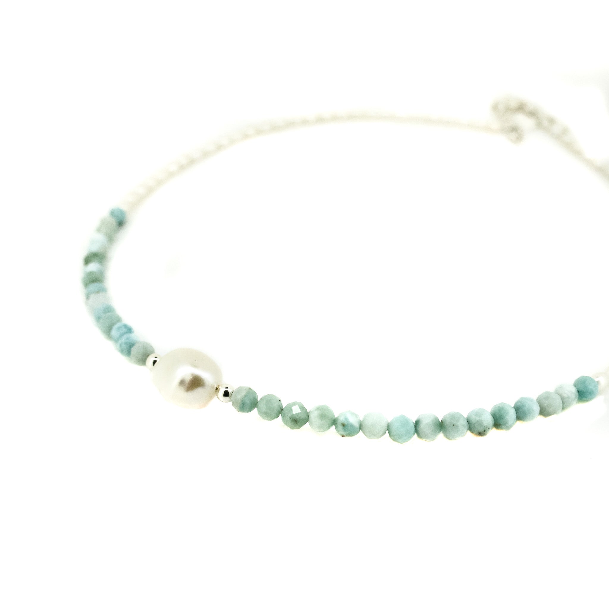 Transport yourself to a tropical paradise with our Blue lagoon Keshi pearl larimar necklace. Designed for ocean lovers and free spirits, this stunning piece features a shimmering freshwater keshi pearl,soothing larimar gemstones , anddainty rice freshwater pearls , creating a soft, flowing design reminiscent of sunlit waves and crystal-clear waters. With its beachy vibe , this necklace is perfect for those who adore effortless elegance and the beauty of the sea. Whether you're strolling along the shore or dressing up for a summer night out, this necklace will keep the ocean close to your heart.