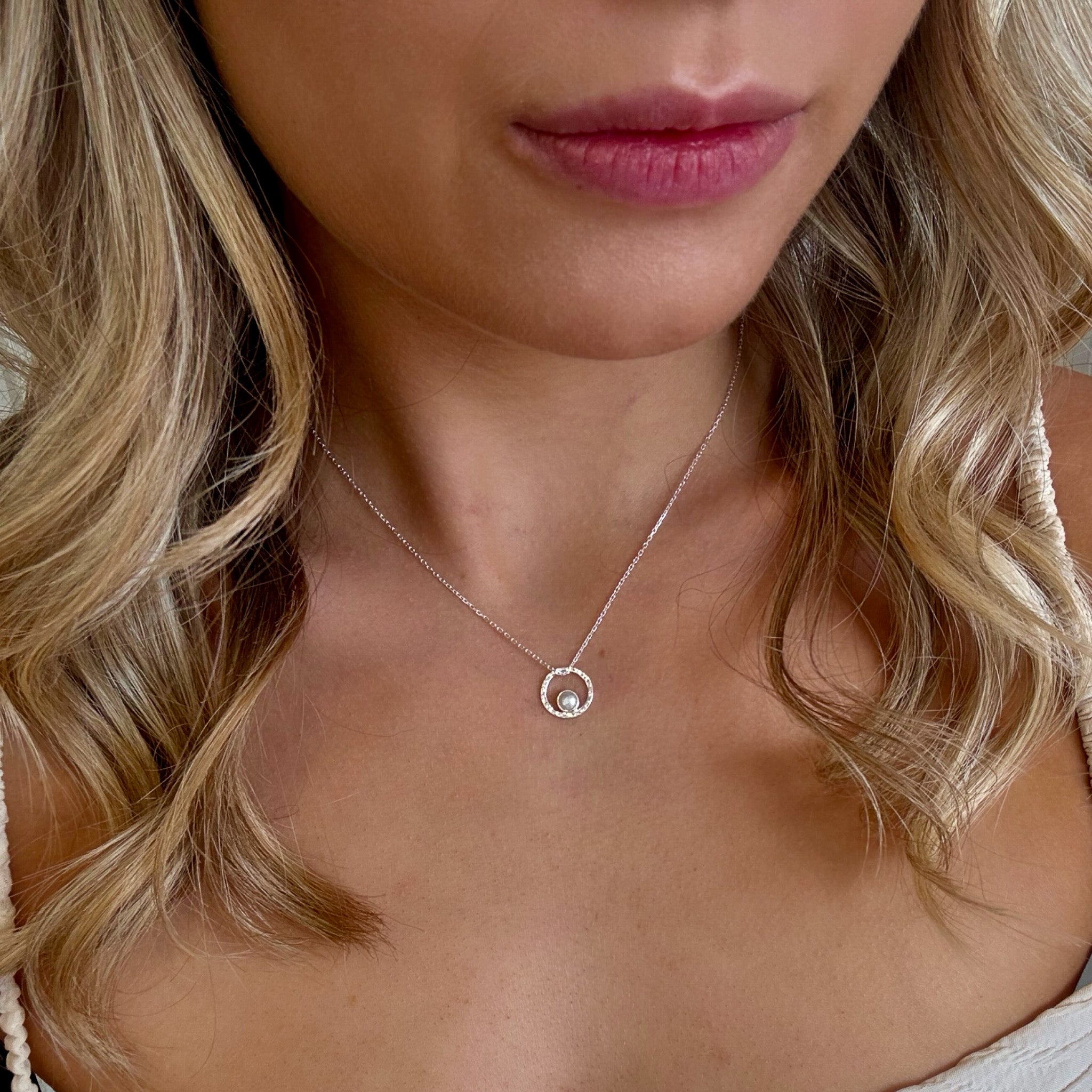 Capture the magic of a glowing Cable Beach sunset with the Sunset Swirls Pearl Necklace. This dainty, symbolic pendant features a delicate sterling silver circle representing the sun dipping below the horizon, accented by a soft freshwater pearl reminiscent of the shimmering reflection over Broome’s famous turquoise waters.