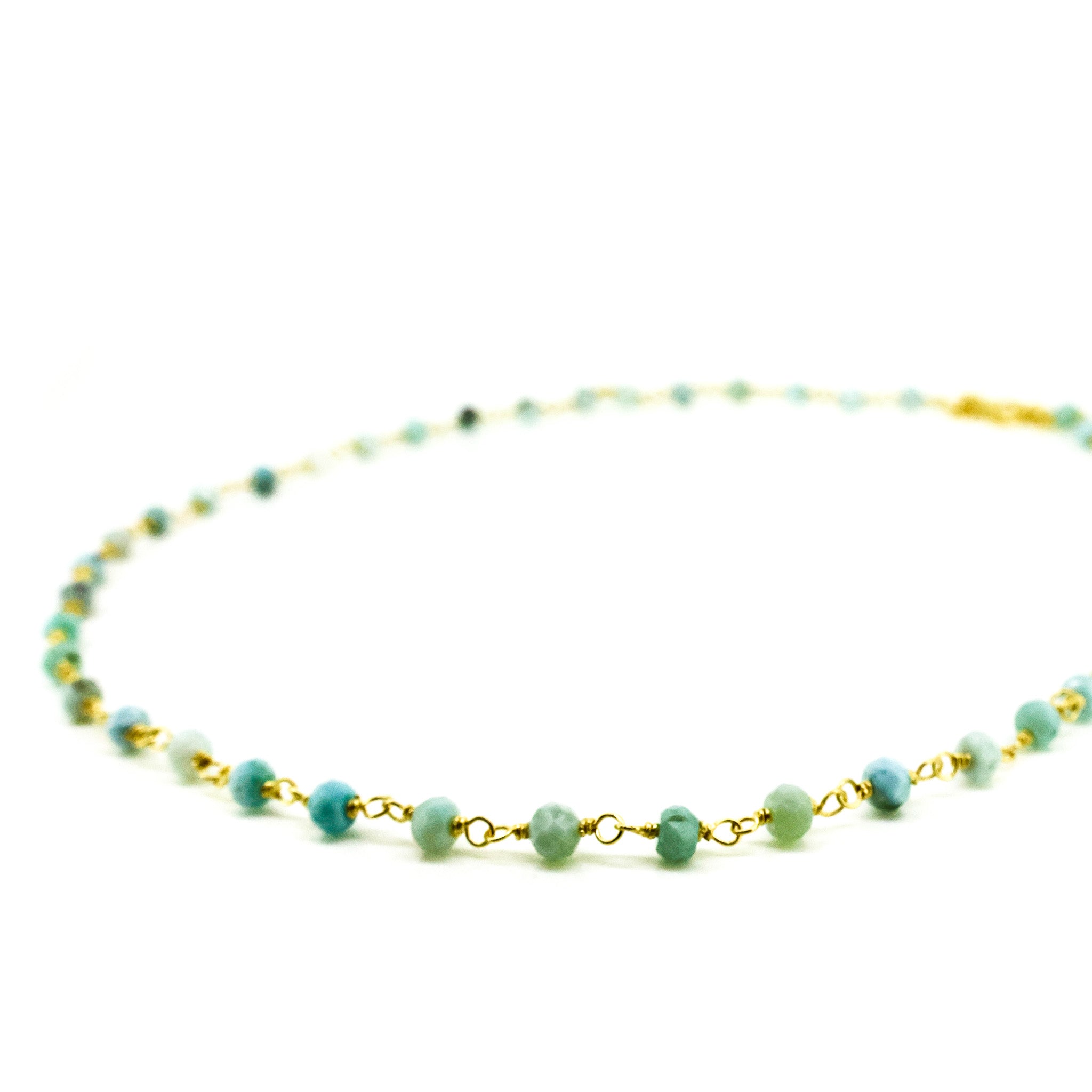 Immerse yourself in the soothing vibes of our Caribbean Dreams larimar necklace, an exquisite fusion of Larimar gemstones and Gold Vermeil that mirrors the calm azure waters of the Caribbean.