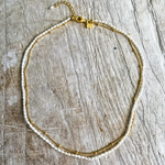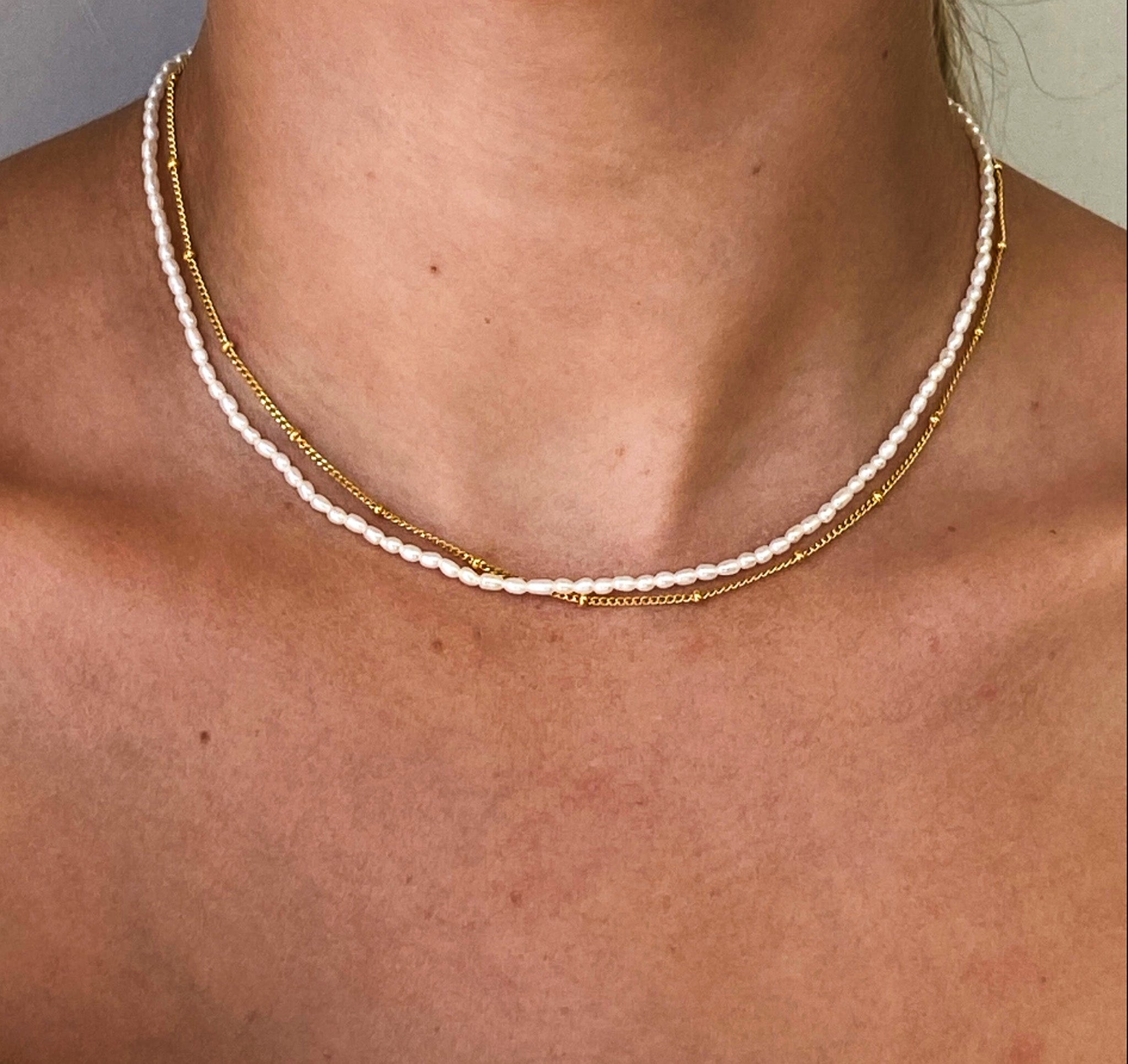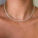 Deliciously devine is how we describe this stunning necklace. Dainty freshwater pearls are layered with a dainty detailed gold vermeil chain available in three adjustable lengths. The shortest length sits as a choker style necklace perfect for layering