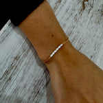 Embrace the serene beauty of the sea with our Pearl Coast Bracelet. This dainty piece features a delicate row of lustrous rice pearls, reminiscent of glistening waves along the shore. The pearls are strung on a refined gold vermeil chain, creating a perfect harmony of elegance and beachy charm.
