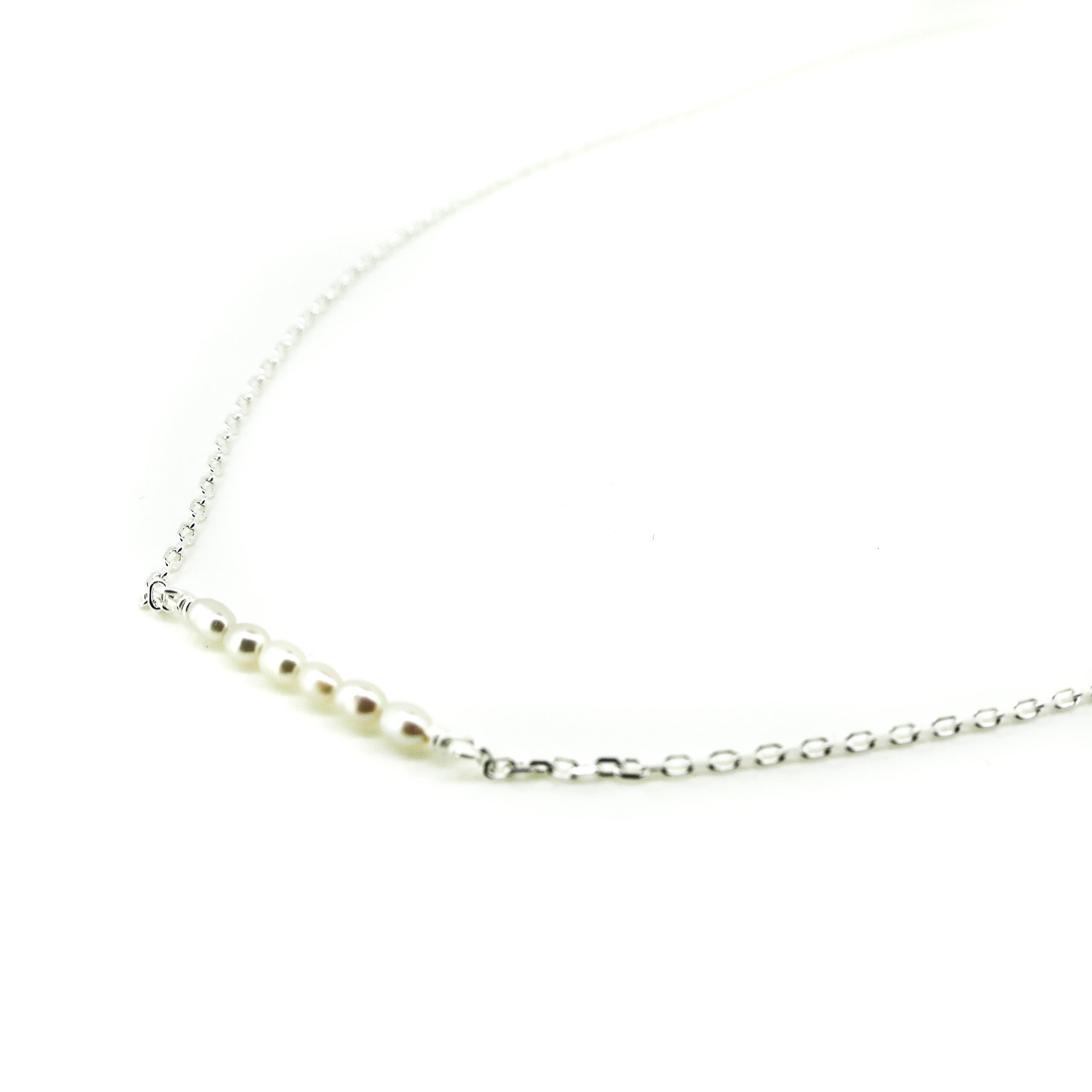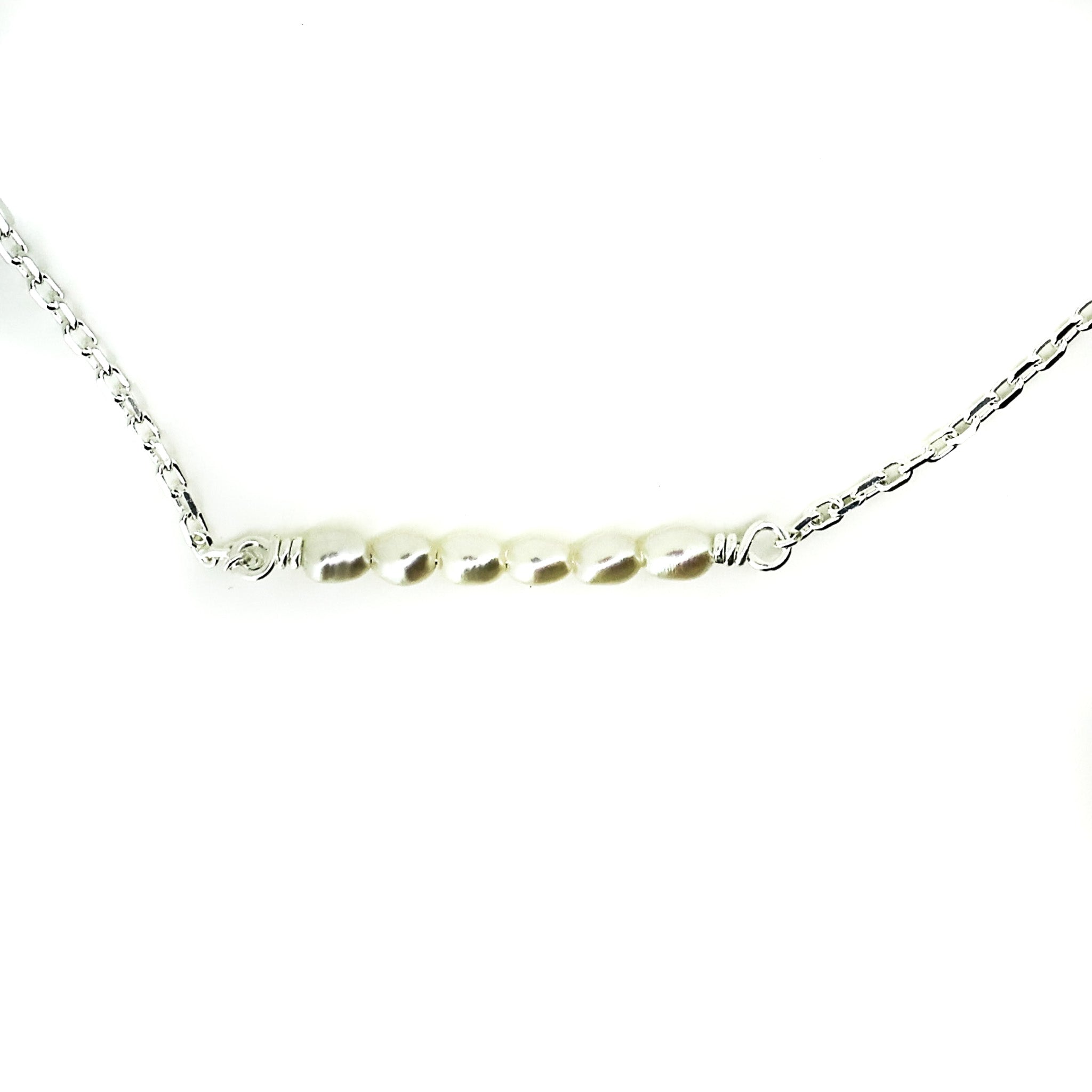 Inspired by the stillness of the shoreline, the Pearl Coast Necklace is a graceful tribute to coastal beauty and minimal design. Featuring six luminous freshwater pearls arranged in a clean horizontal line on a fine sterling silver chain, this piece brings effortless elegance to your everyday style.