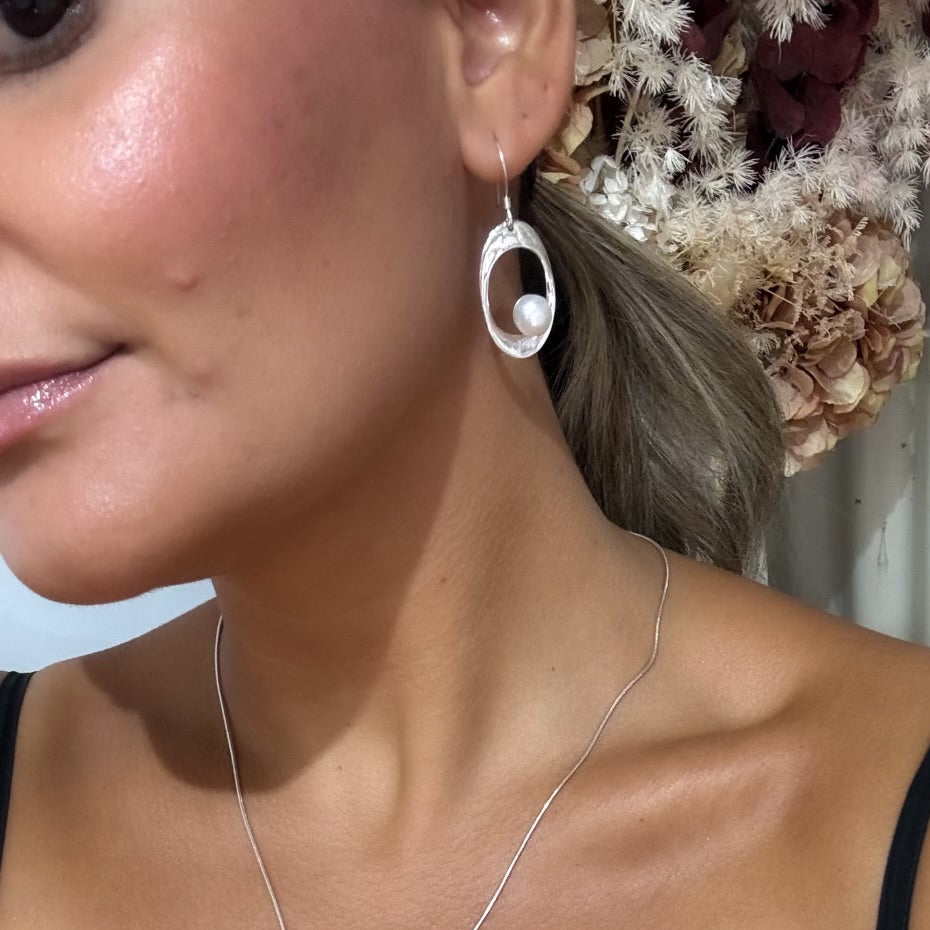 Discover elegance with our Halo Pearl Hooks, featuring lustrous freshwater pearls elegantly suspended from a halo of sterling silver. These earrings blend timeless beauty with modern design, perfect for any occasion. Elevate your style with a touch of sophistication!