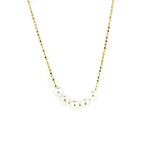Indulge in the graceful beauty of our Cable Beach Sands Pearl Necklace adorned with five delicate pearls that echo the allure of the sandy shores of Cable Beach. Each dainty pearl, like tiny treasures, is meticulously placed along the golden chain, capturing the essence of seaside elegance. The gold vermeil finish adds a touch of warmth and radiance, making this piece a timeless and versatile accessory.
