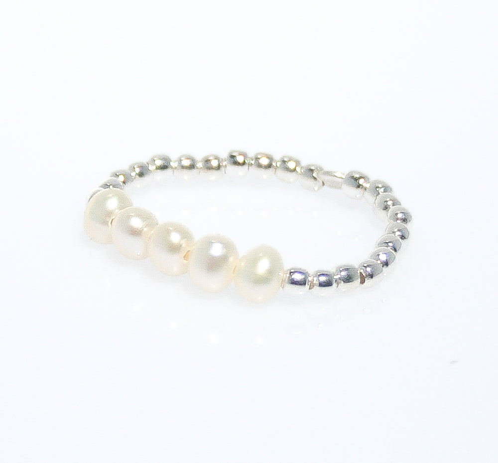 Delicate, comfortable, and effortlessly stylish, the Pearl and Sterling Silver Stretch Ring is the perfect blend of elegance and ease. Designed with a mix of genuine seed pearls and polished sterling silver beads, this ring sits snugly on the finger thanks to its durable stretch elastic band. It’s a charming piece that moves with you—ideal for stacking or wearing solo for a minimalist look. No clasps, no fuss—just refined beauty that fits any finger with comfort and grace.