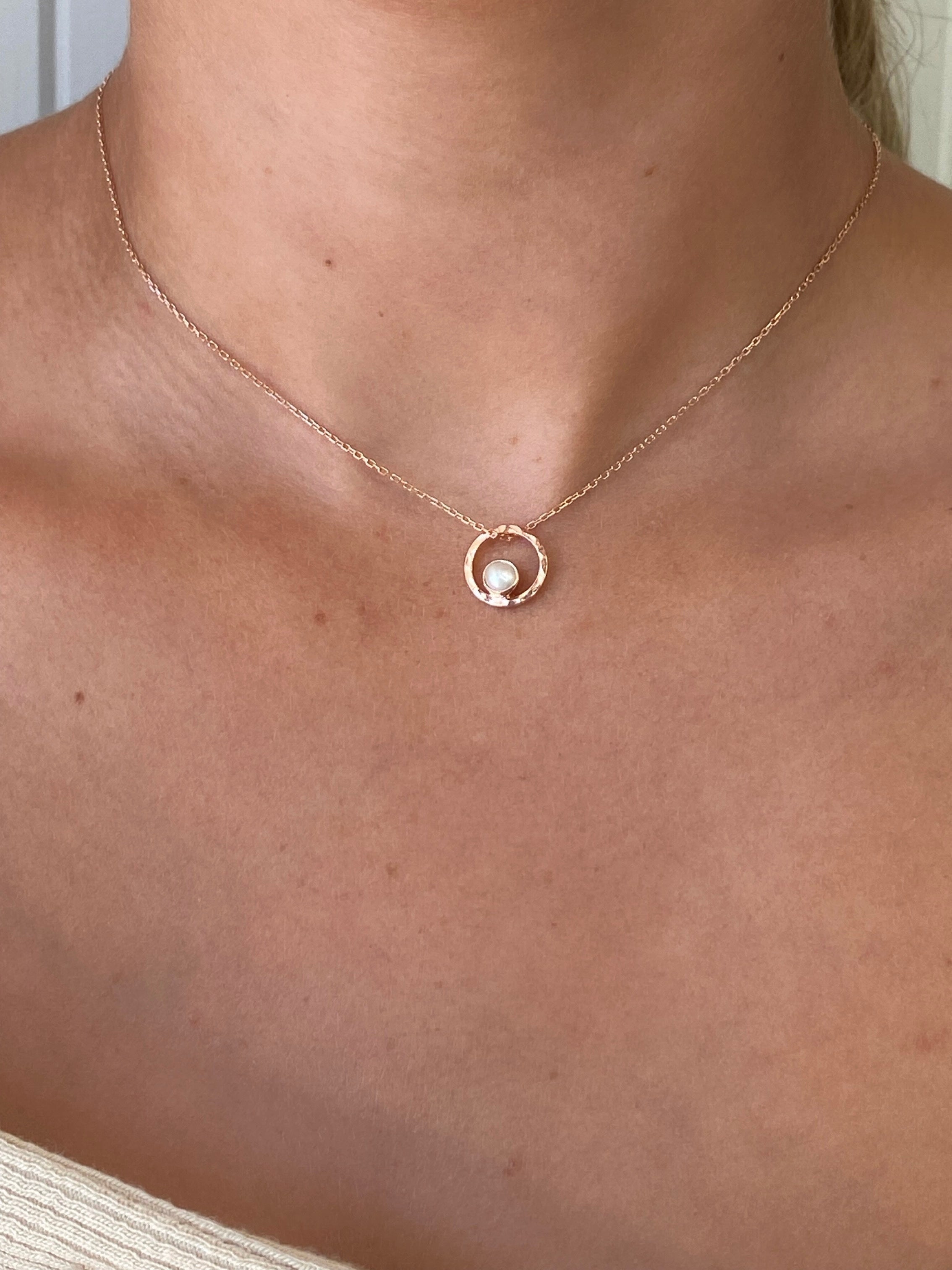 Introducing our enchanting Sunset Swirls Necklace in radiant rose gold Vermeil, where delicate craftsmanship meets the allure of the setting sun. Gracefully encircling a single, luminous pearl within a rose gold embrace, this dainty necklace exudes a mesmerising elegance reminiscent of twilight's embrace.