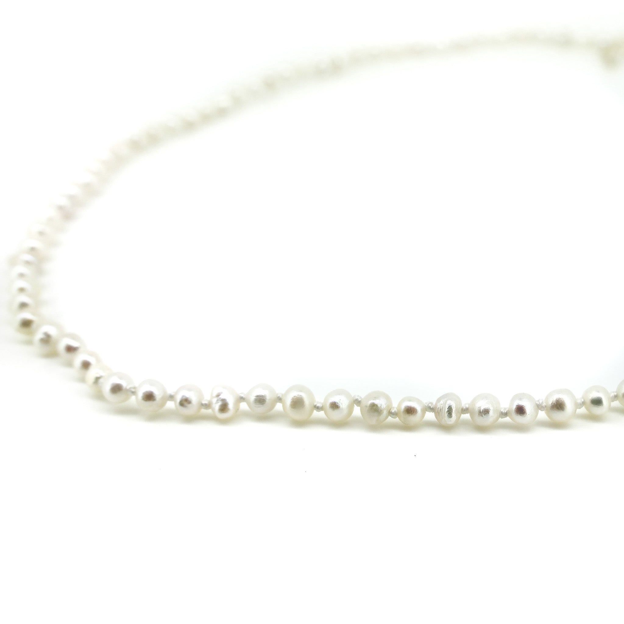 Delicate as seafoam and timeless as the tides, this dainty seed pearl necklace is a true ocean treasure. Each luminous pearl is individually silk-knotted, creating a fluid, graceful drape that echoes the rhythm of rolling waves. Lightweight and effortlessly elegant, this piece is perfect for layering or wearing solo—bringing a touch of coastal beauty to every look.