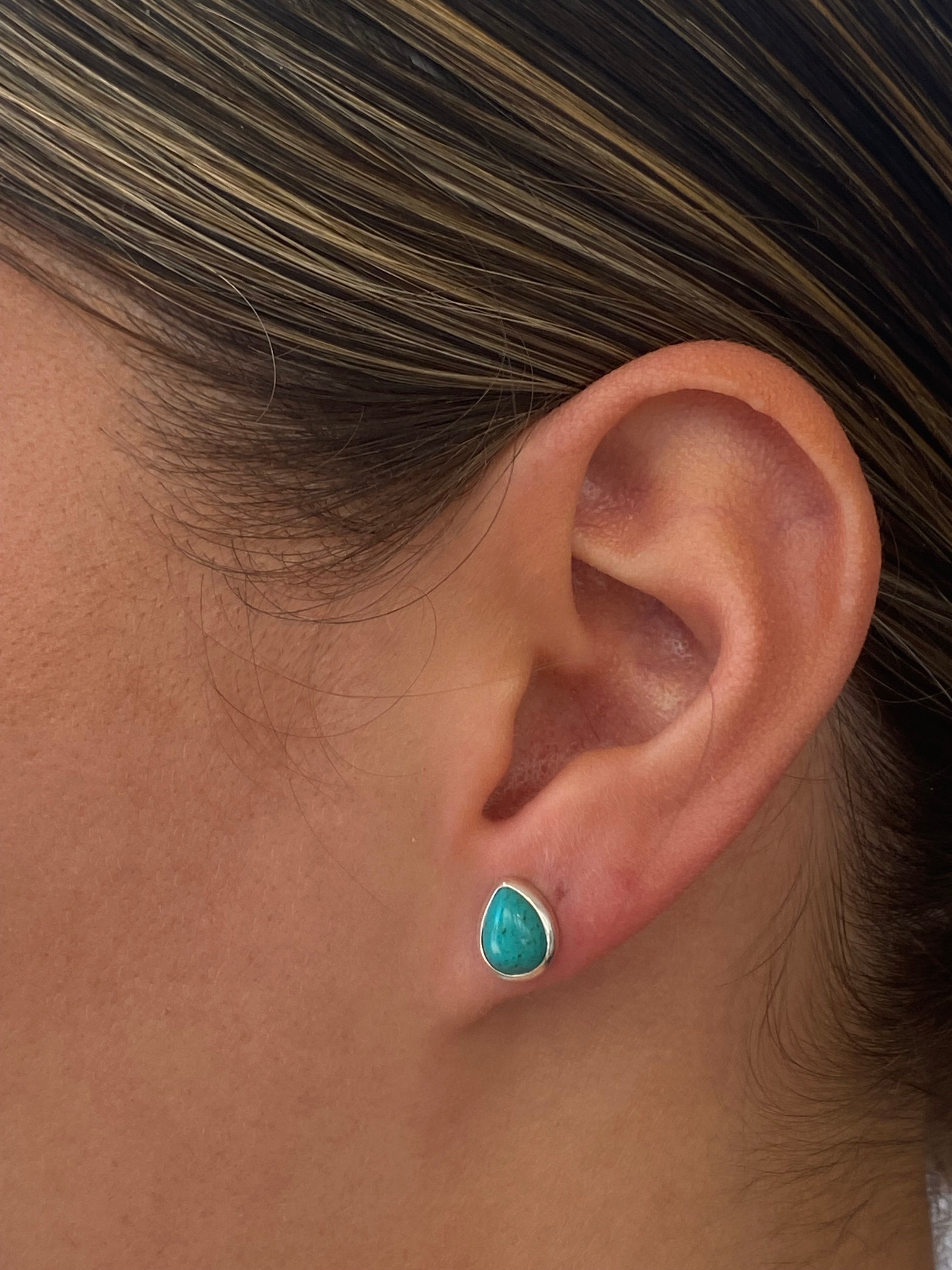 Add a pop of color and elegance to your look with our Sterling Silver Turquoise Dew Drop Studs. Featuring vibrant turquoise stones set in sleek sterling silver, these earrings capture the delicate beauty of morning dew. Perfect for everyday wear or special occasions, they offer a timeless and sophisticated touch.