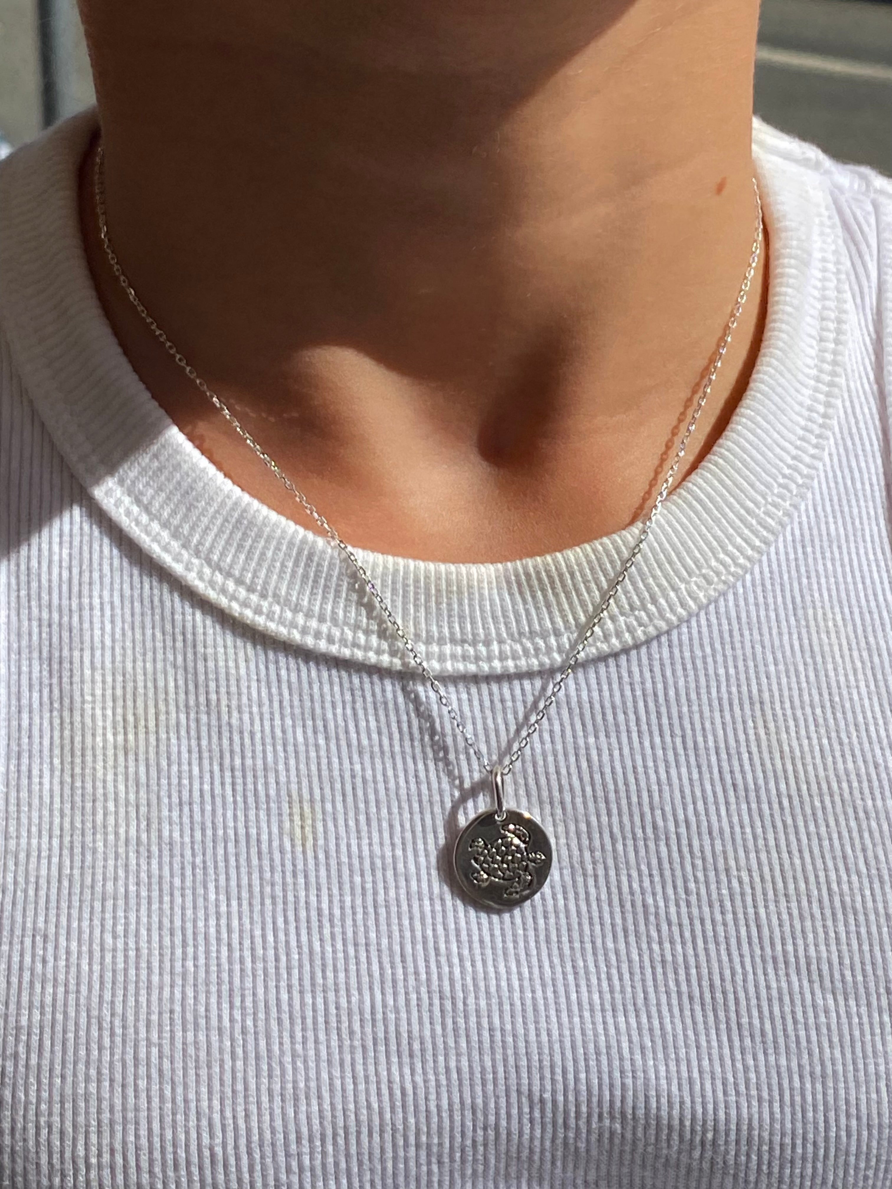 Embark on a journey of serenity and symbolism with our enchanting Turtle Pendant. Skillfully crafted in sterling silver, this graceful piece captures the essence of the sea with its intricately detailed turtle design.