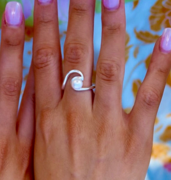 Ride the waves in style with our cute sterling silver wave ring, featuring a lustrous freshwater pearl that shimmers like sunlight on the sea. Inspired by the rhythm of the ocean, this beautifully crafted ring captures the essence of beach days, salty air, and endless horizons.