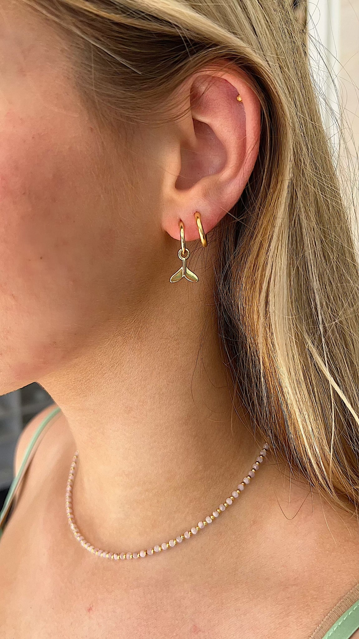 Inspired by the gentle power of the sea, our Whale Tail Gold Huggies bring a touch of ocean magic to your everyday look. These dainty huggie hoops feature a sleek whale tail charm, symbolizing freedom, strength, and a deep connection to nature.