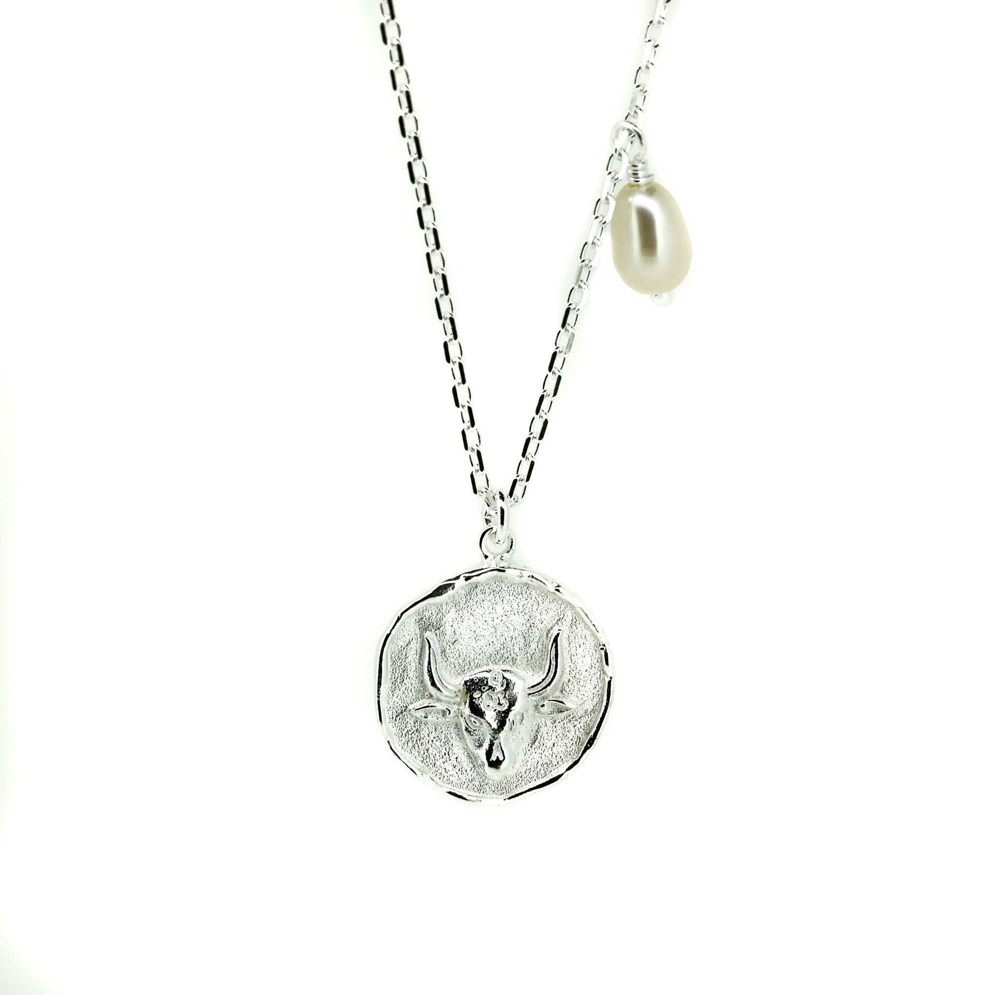 This necklace features a pendant hand crafted with the iconic Taurus bull, meticulously fashioned in shimmering sterling silver. Symbolising stability, determination, and a deep connection to the earth, the Taurus pendant is a testament to the unwavering nature of those born under this sign.